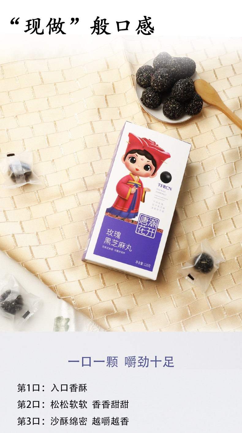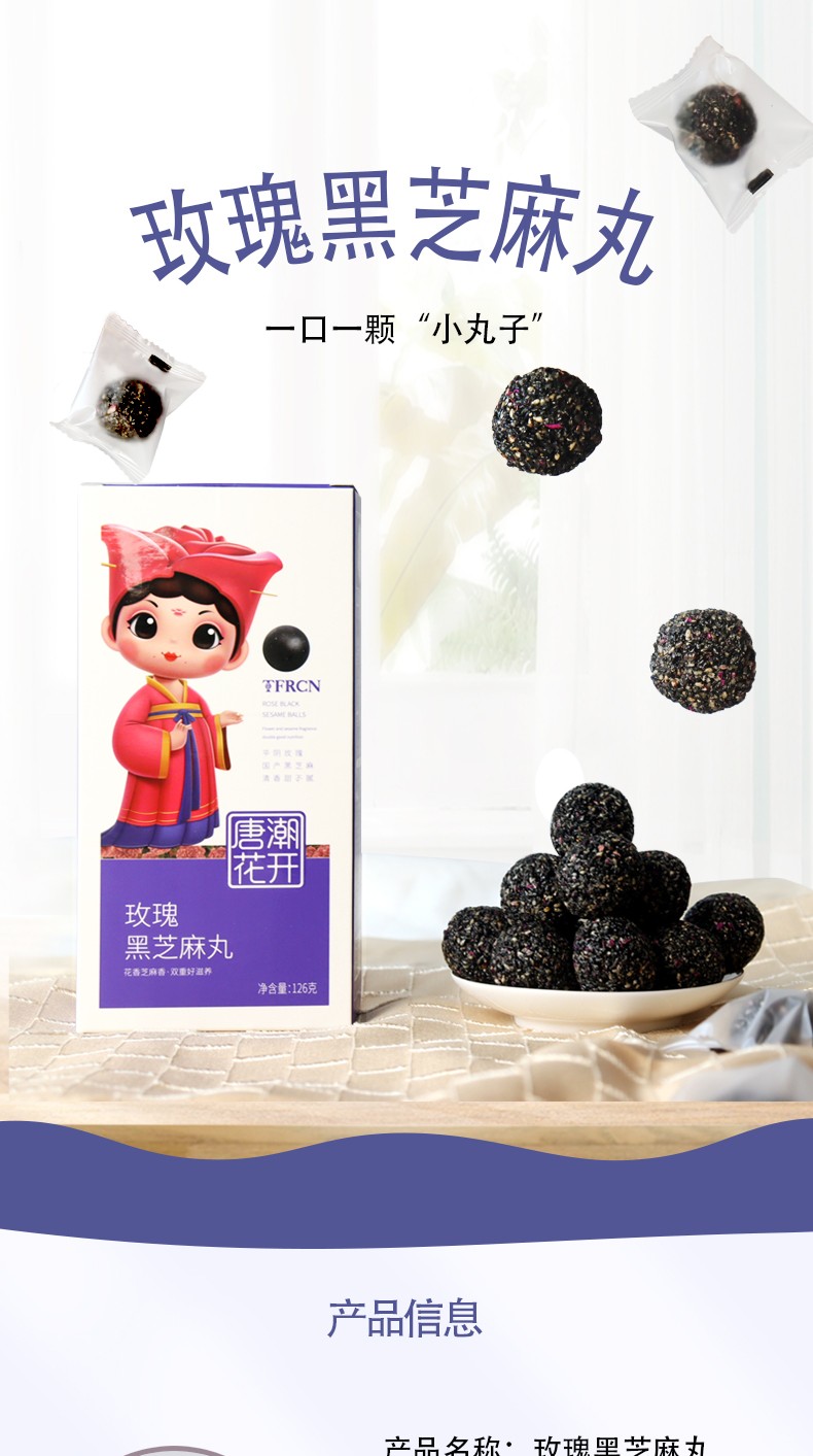 唐潮花開平陰玫瑰黑芝麻丸 香甜不膩 盒裝126g