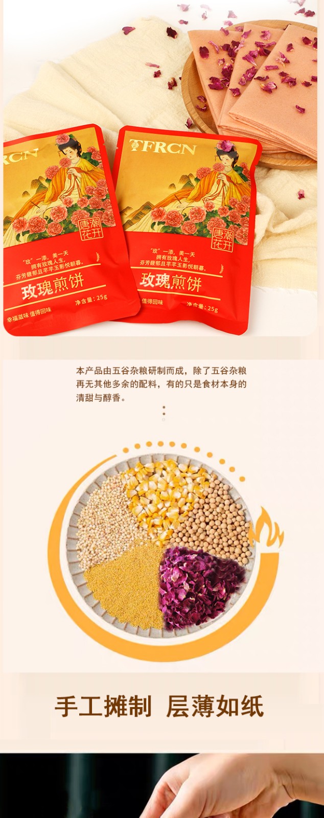 唐潮花開(kāi) 平陰玫瑰 山東特產(chǎn) 玫瑰煎餅山東煎餅手工速食早餐即食