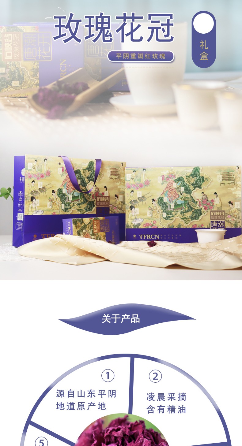 唐潮花開(kāi)平陰重瓣紅玫瑰 玫瑰花冠禮盒90g