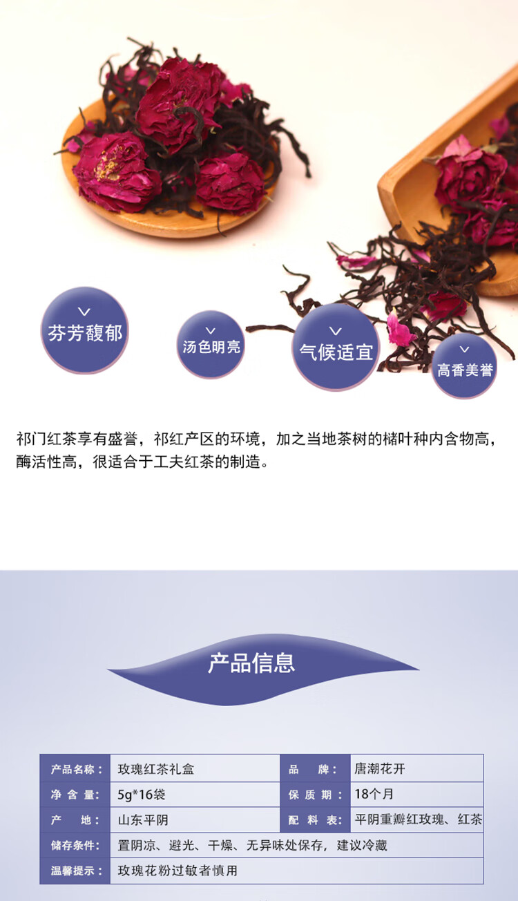 唐潮花開(kāi)平陰重瓣紅玫瑰花冠紅茶獨(dú)立包裝禮盒裝