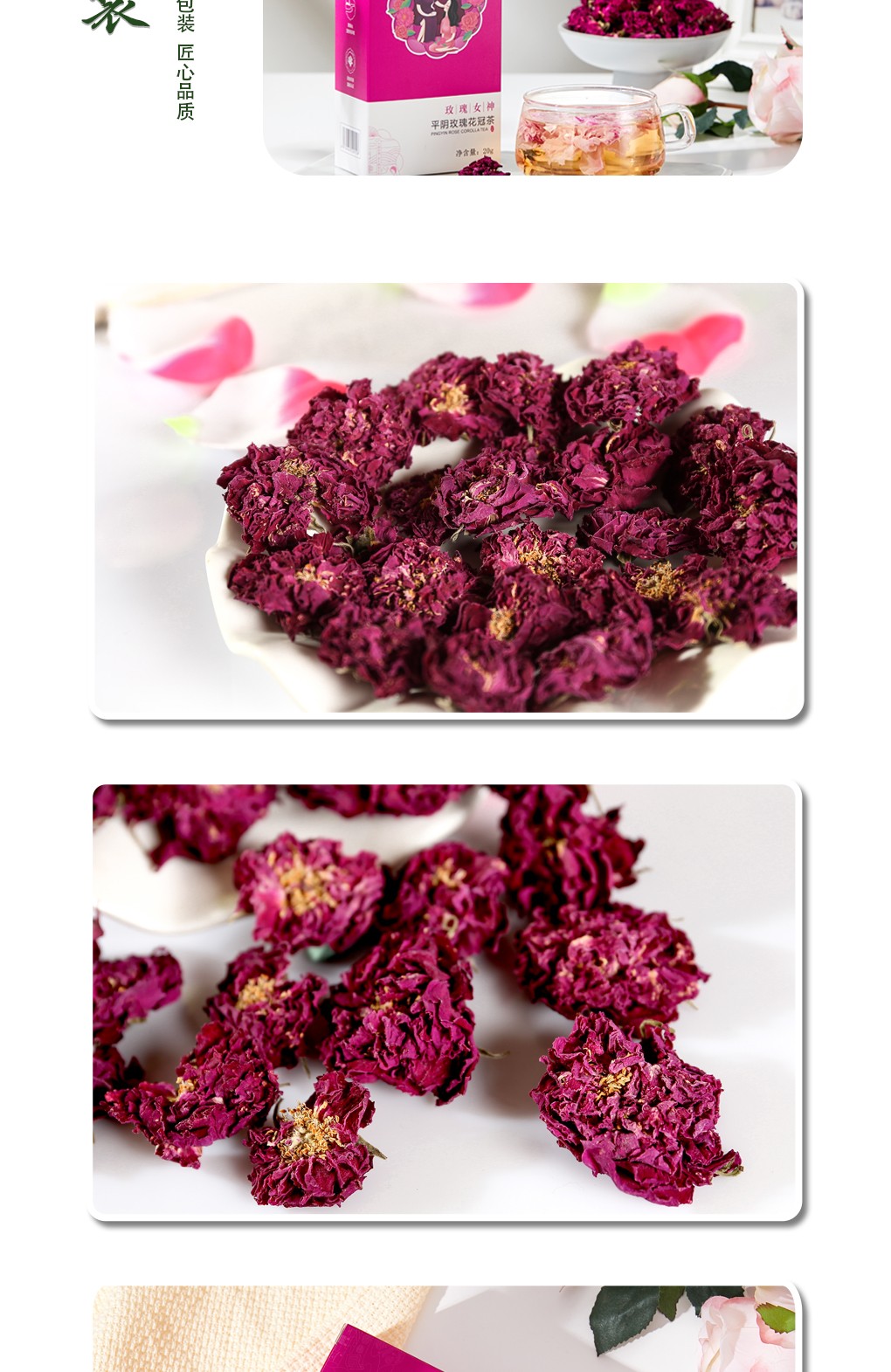 諾上花玫瑰女神20g裝玫瑰花冠低溫烘干平陰重瓣紅玫瑰